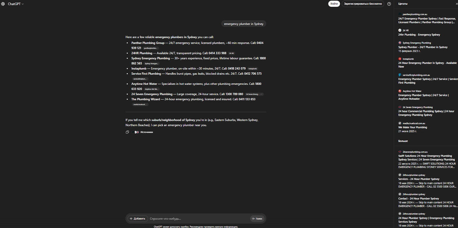 Запрос: “emergency plumber in Sydney”