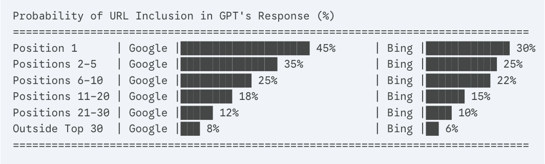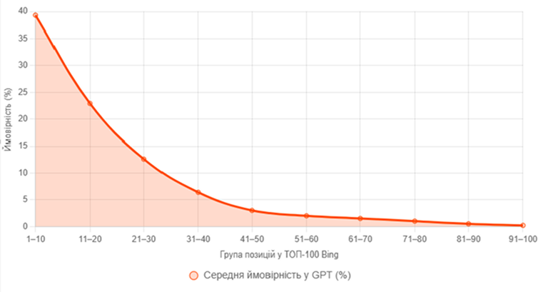 Вероятность попадания URL в ChatGPT по позициям в Bing