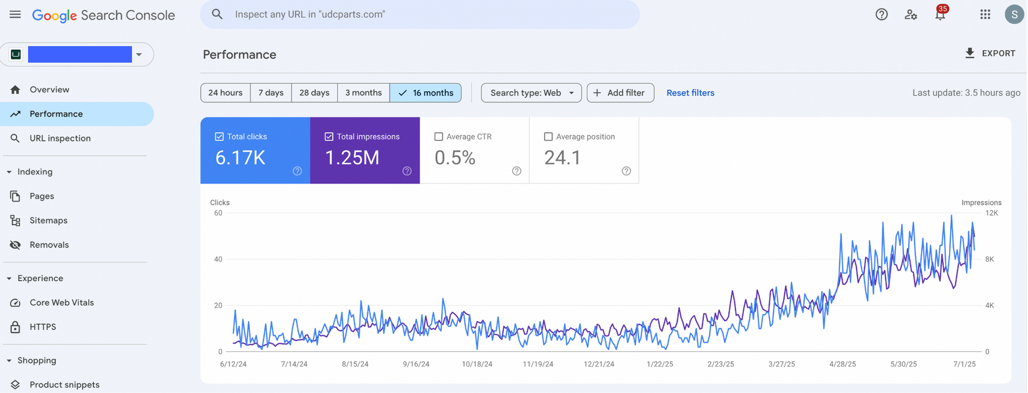 Сейчас имеем более 7500 страниц в индексе Google, каждая из которых отвечает поисковому интенту пользователей. Сайт стал более “наполненным” в глазах Google и начал стабильно расти в охвате.